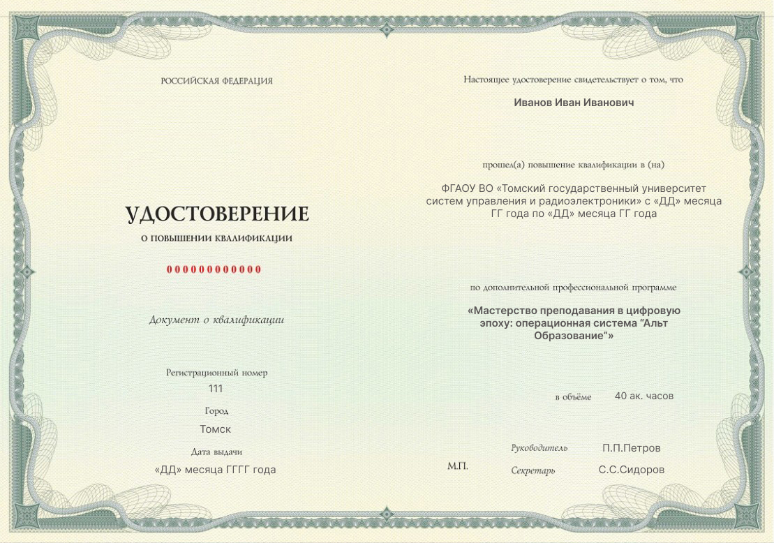 Вы получите удостоверение о повышении квалификации с занесением в Федеральный реестр документов об образовании и свидетельство «Базальт СПО»