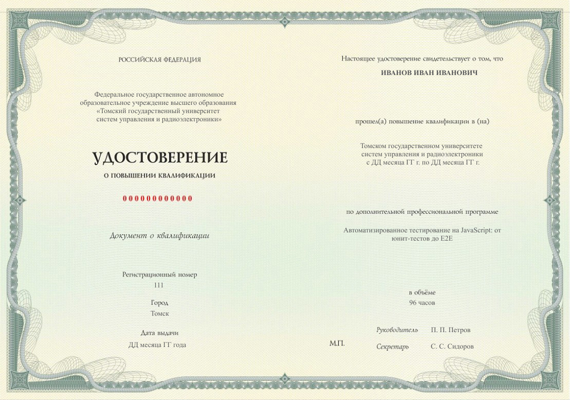 Вы получите удостоверение о повышении квалификации с занесением в Федеральный реестр документов об образовании